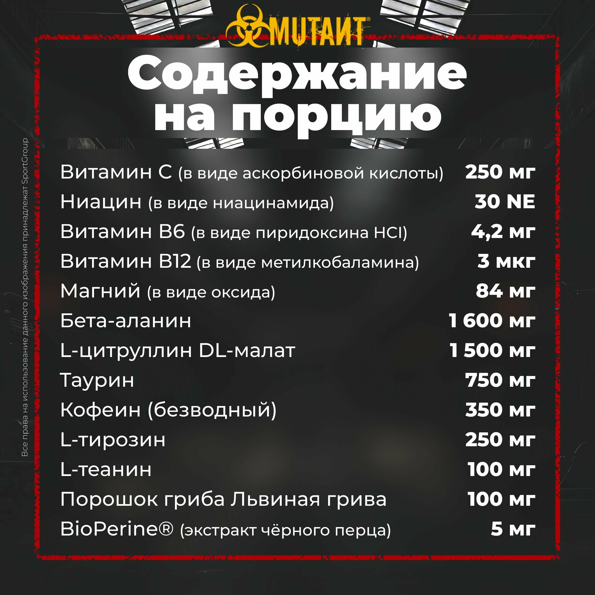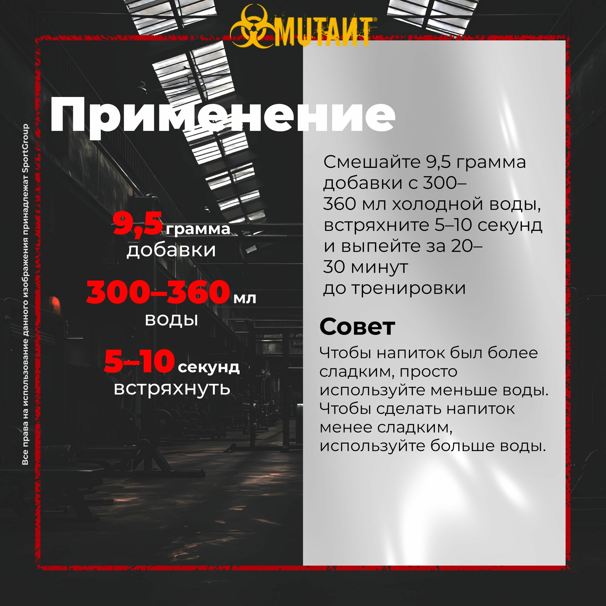 | Плюсы: | Эчень эффнктивный предтреник, впрочем как и вся продукция от Мутанта |