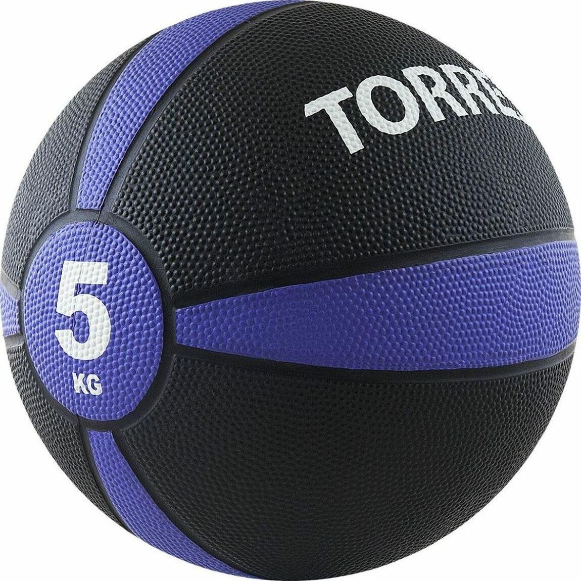Медбол TORRES 5 кг , арт.AL00225, резина, диаметр 23,8 см, черно-фиолетово-белый