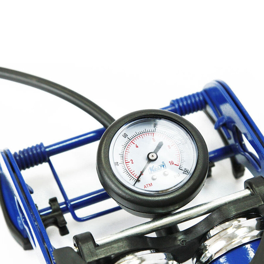 Насос ножной "KRAFT" (с манометром, 2 цилиндра, в сумке)