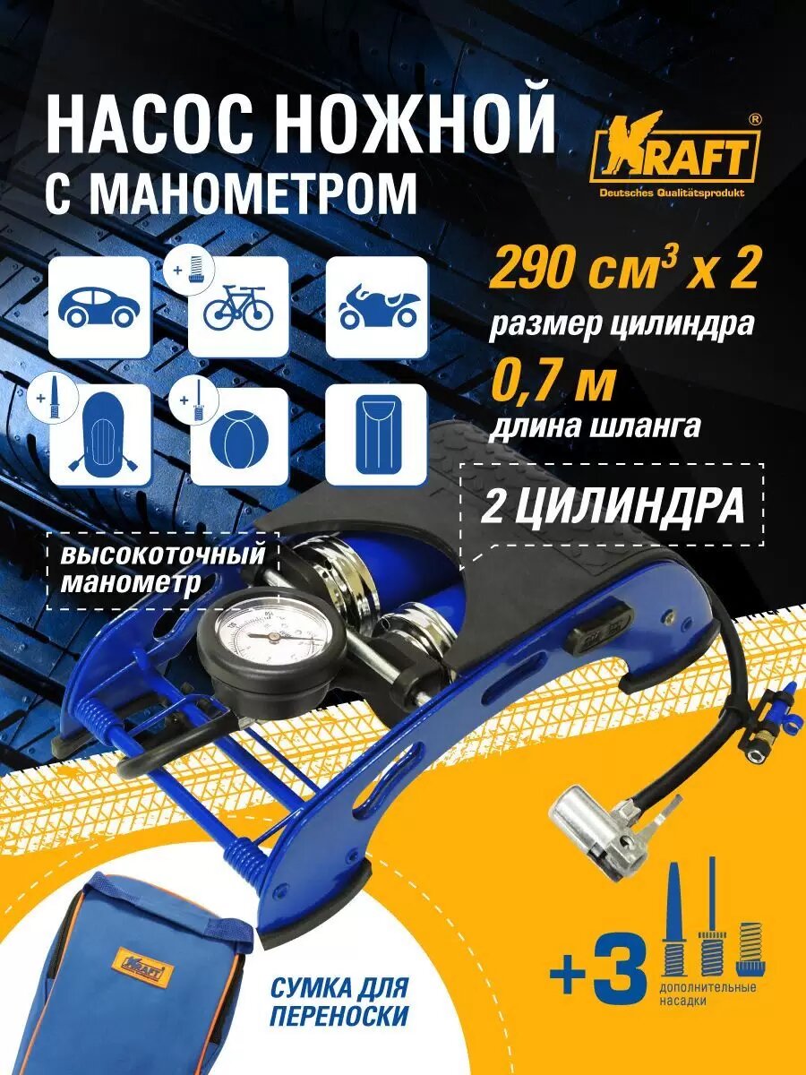 KRAFT KRAFT Насос ножной с манометром (2 цилиндра) в сумке KRAFT KT810002 KRAFT KT810002