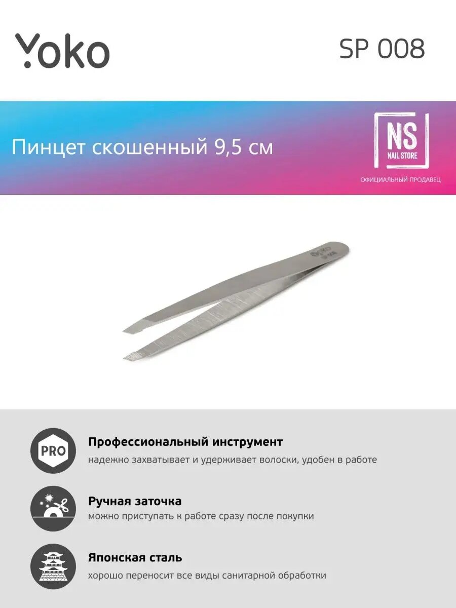 Yoko. Пинцет скошенный. Матовый 95 мм. Артикул Y SP 008