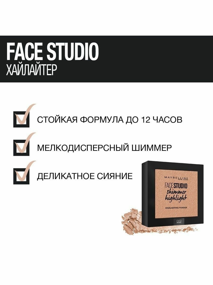Maybelline New York Стойкий мелкодисперсный хайлайтер Facestudio, оттенок 009, бронза, 9 гр