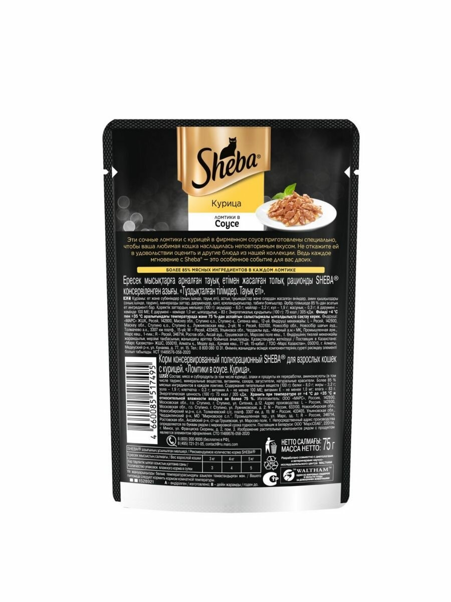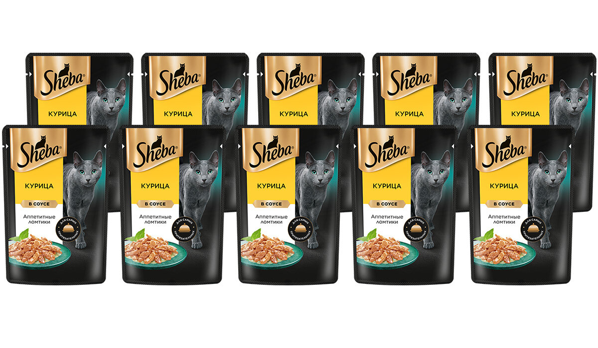 Купить SHEBA для взрослых кошек ломтики в соусе с курицей пауч 75 гр х 10 шт