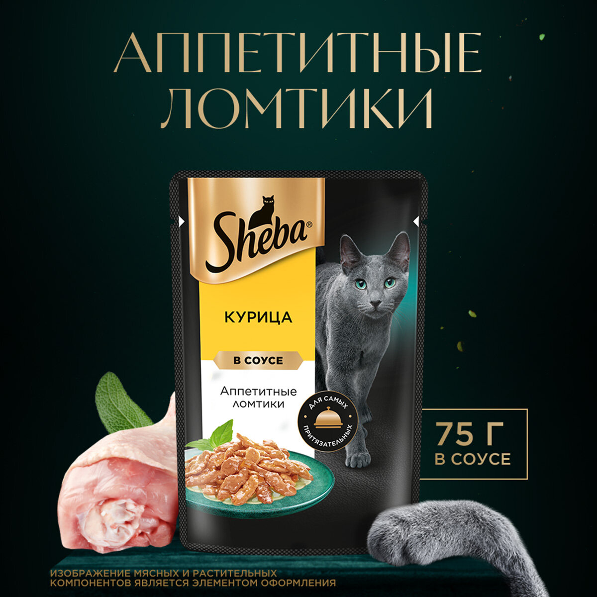Корм влажный для кошек Sheba, курица, ломтики в соусе, 75 г