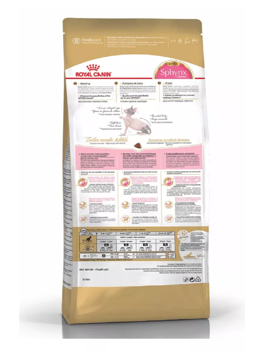 Корм сухой Royal Canin Breed Nutrition Kitten Sphynx, для кошек породы сфинкс возрастом от 3 до 12 месяцев, 2 кг