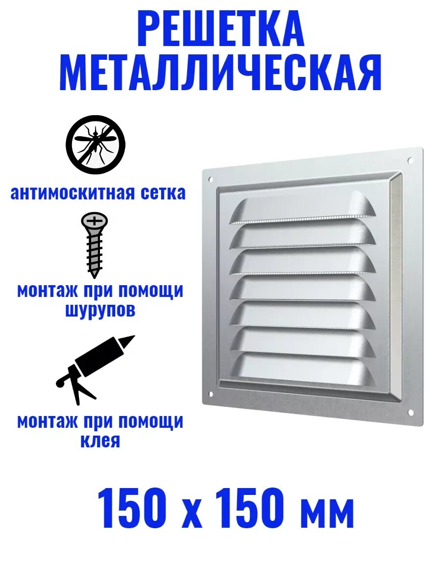 1515МЦ Решётка вентиляционная ERA 150х150 металлическая с сеткой, цинк