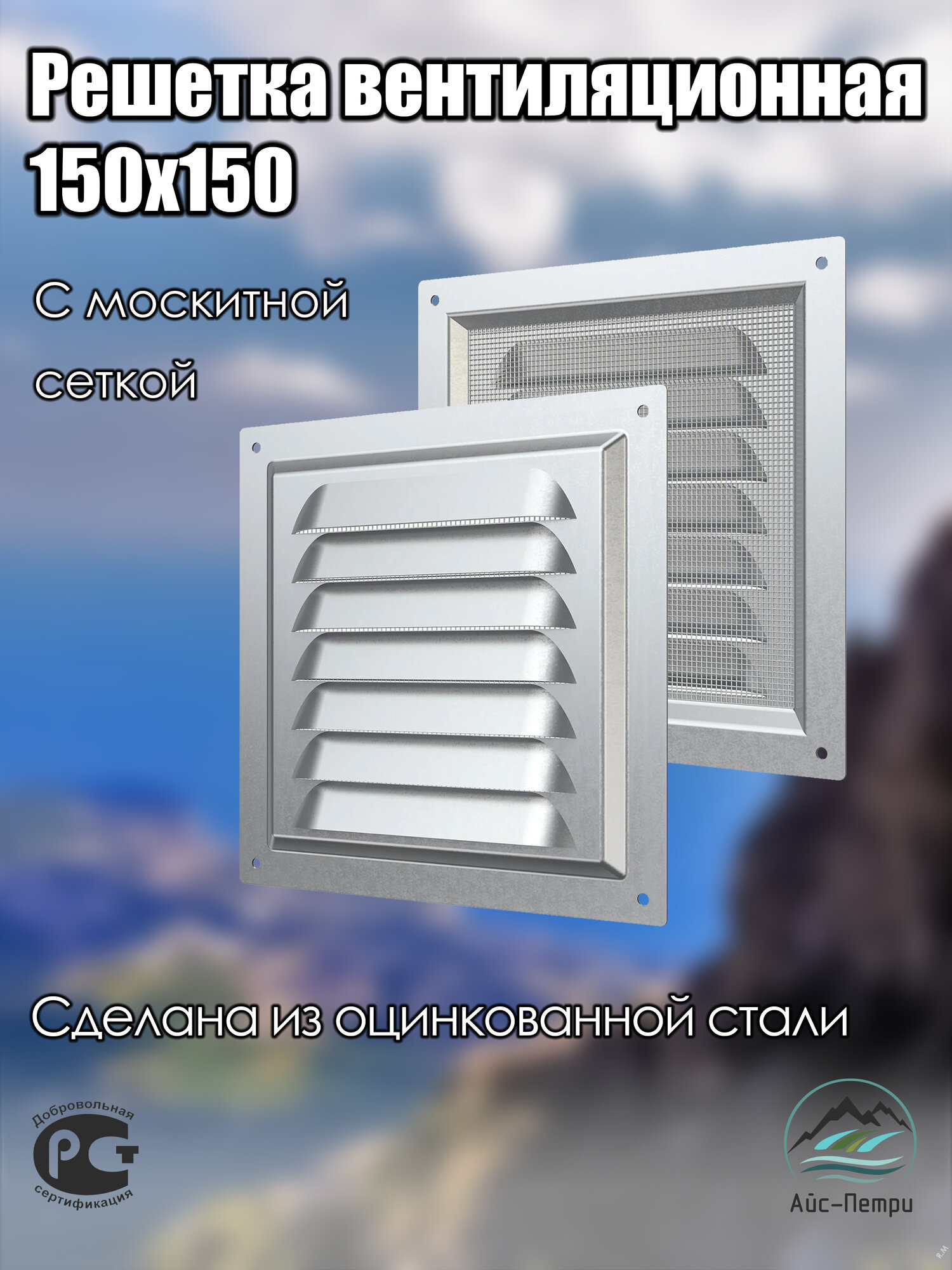 Решетка 1515МЦ, вентиляционная оцинкованная с сеткой 150х150, Сталь