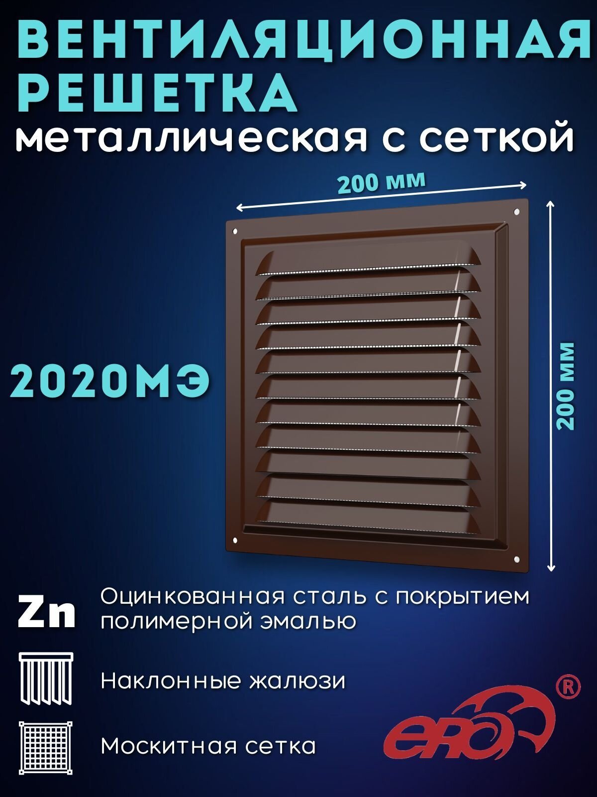 Вентиляционная решетка ERA 2020МЭ 200 x 200 мм
