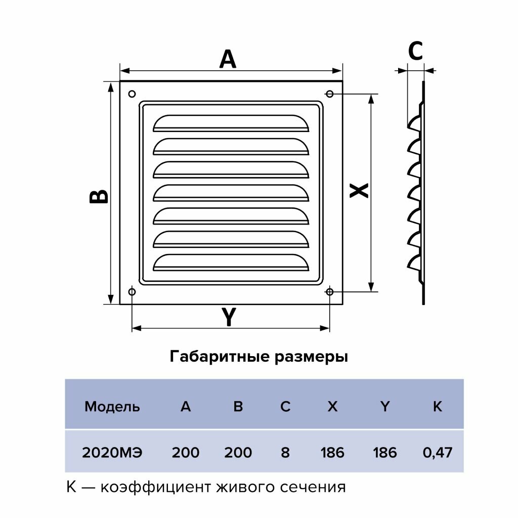 Вентиляционная решетка ERA 2020МЭ 200 x 200 мм