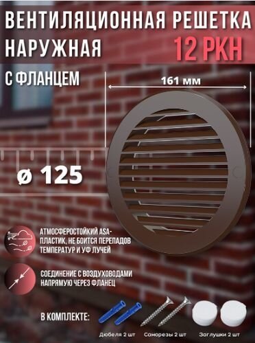 12РКНЗП коричневая решетка наружная вентиляционная круглая D150 с фланцем D125 ASA