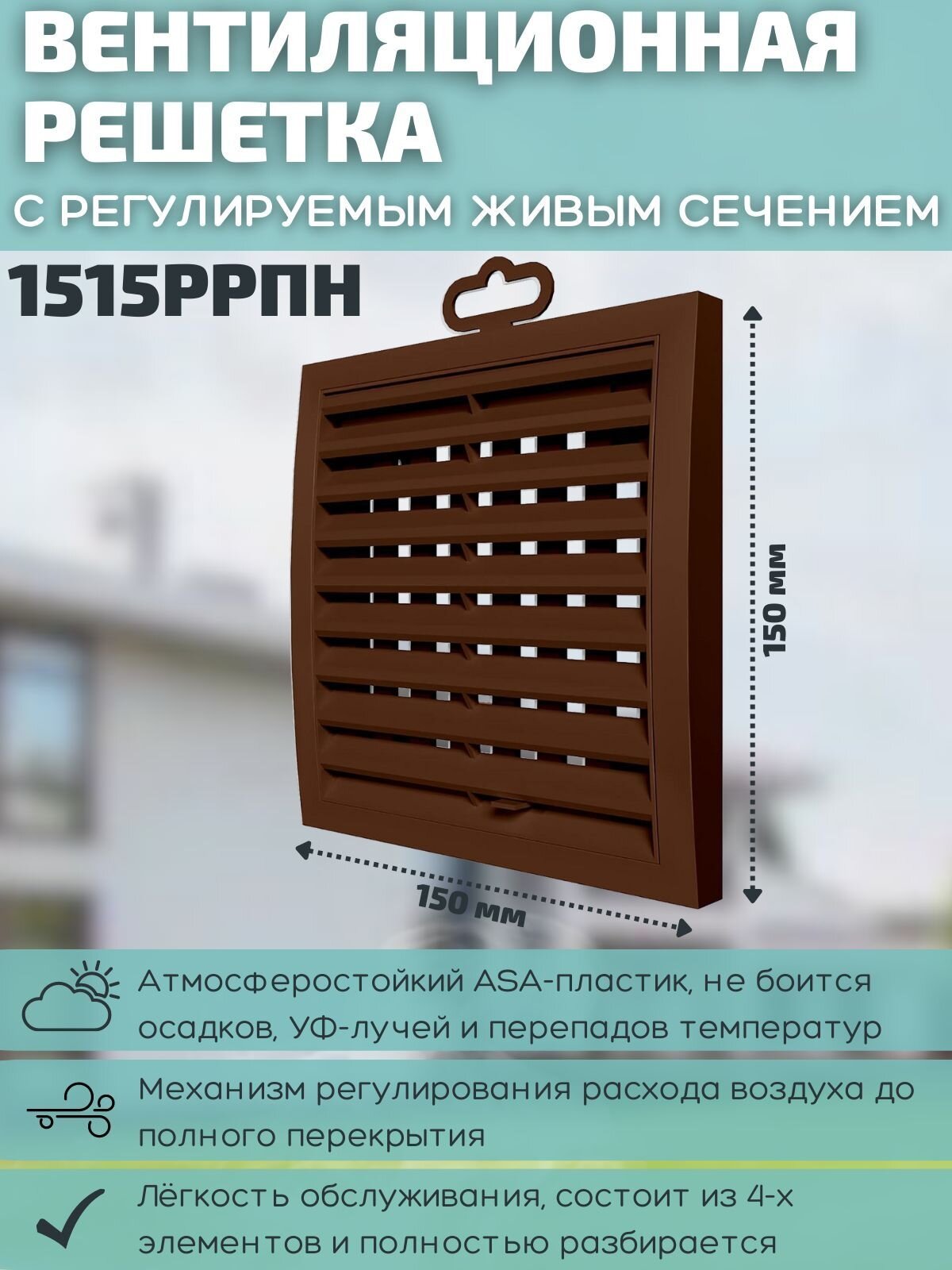 Решетка вентиляционная 150х150 регулируемая 1515РРПН коричневая