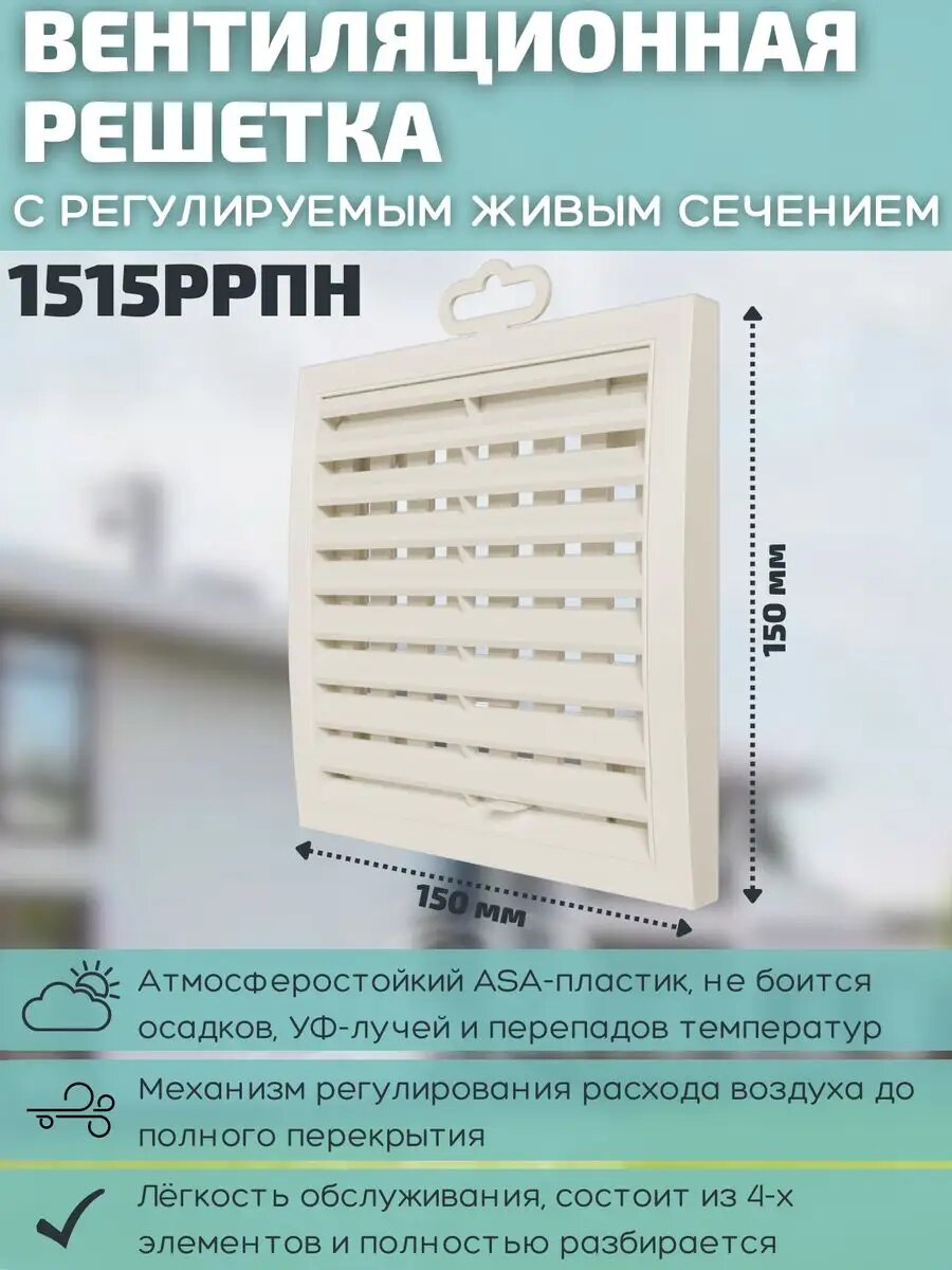 СохранитьРешетка вентиляционная регулируемая 150х150 разъемная наружная 1515РРПН пластик слоновая кость интересное: