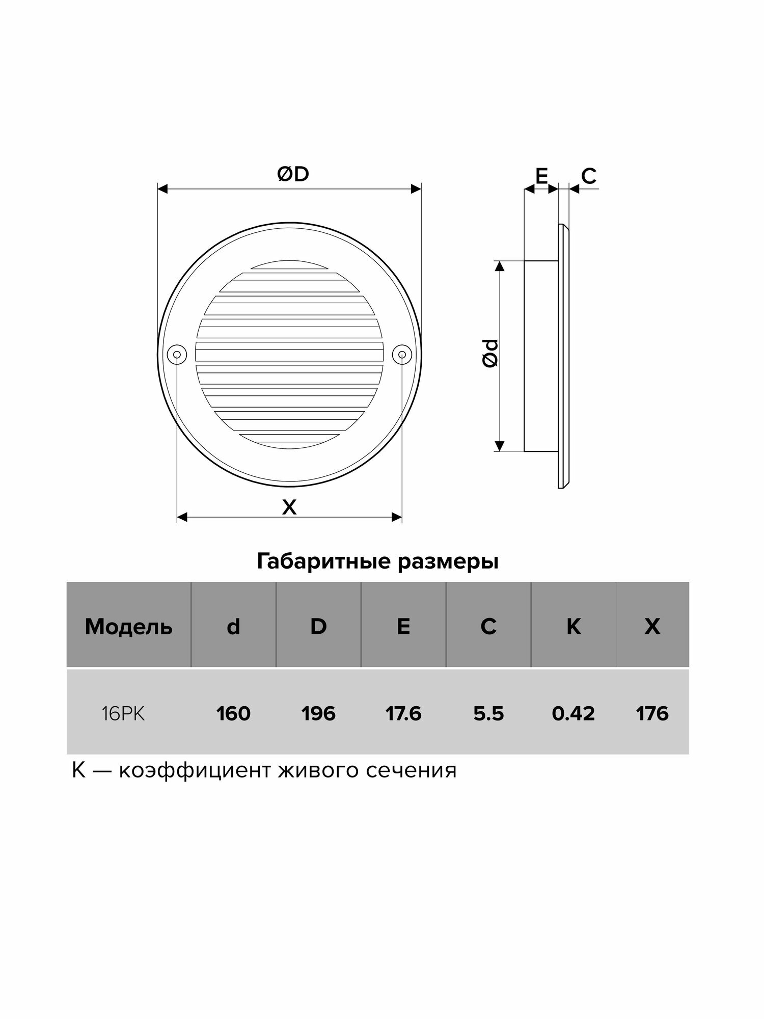 16РК, Решетка вентиляционная круглая D200 вытяжная АБС с фланцем D160