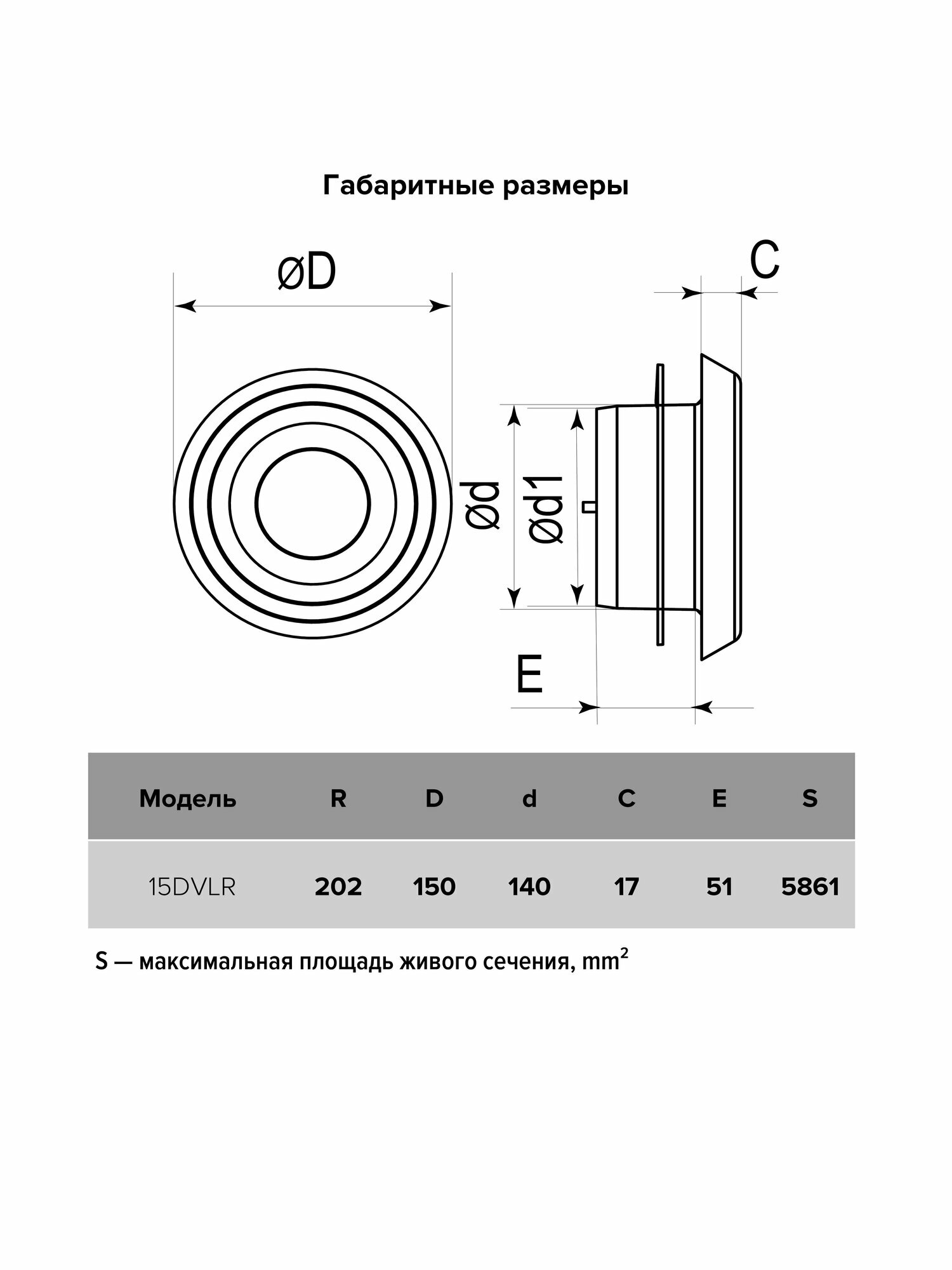 15DVLR, Анемостат приточно-вытяжной регулируемый с фланцем и стопорным кольцом D150