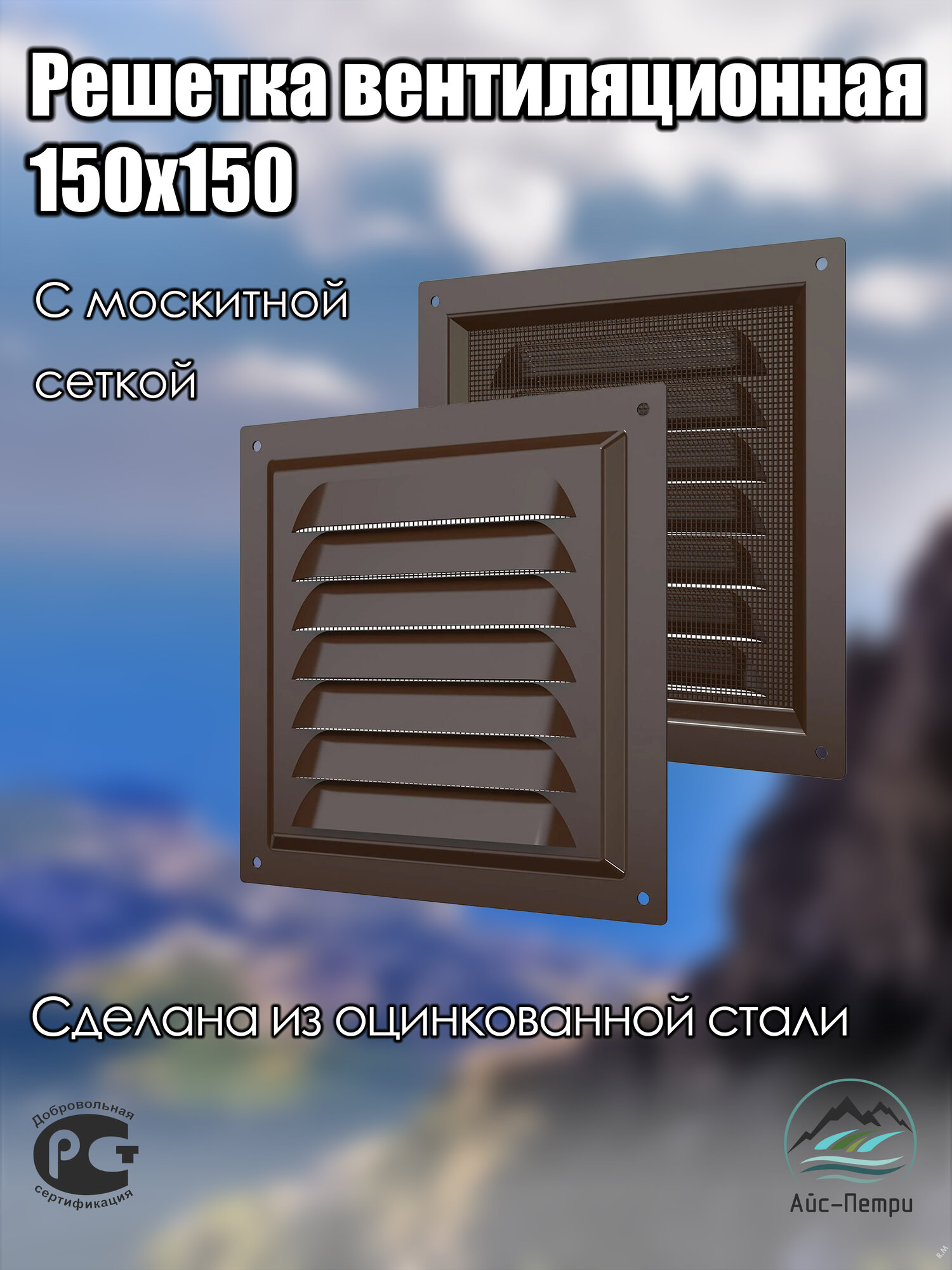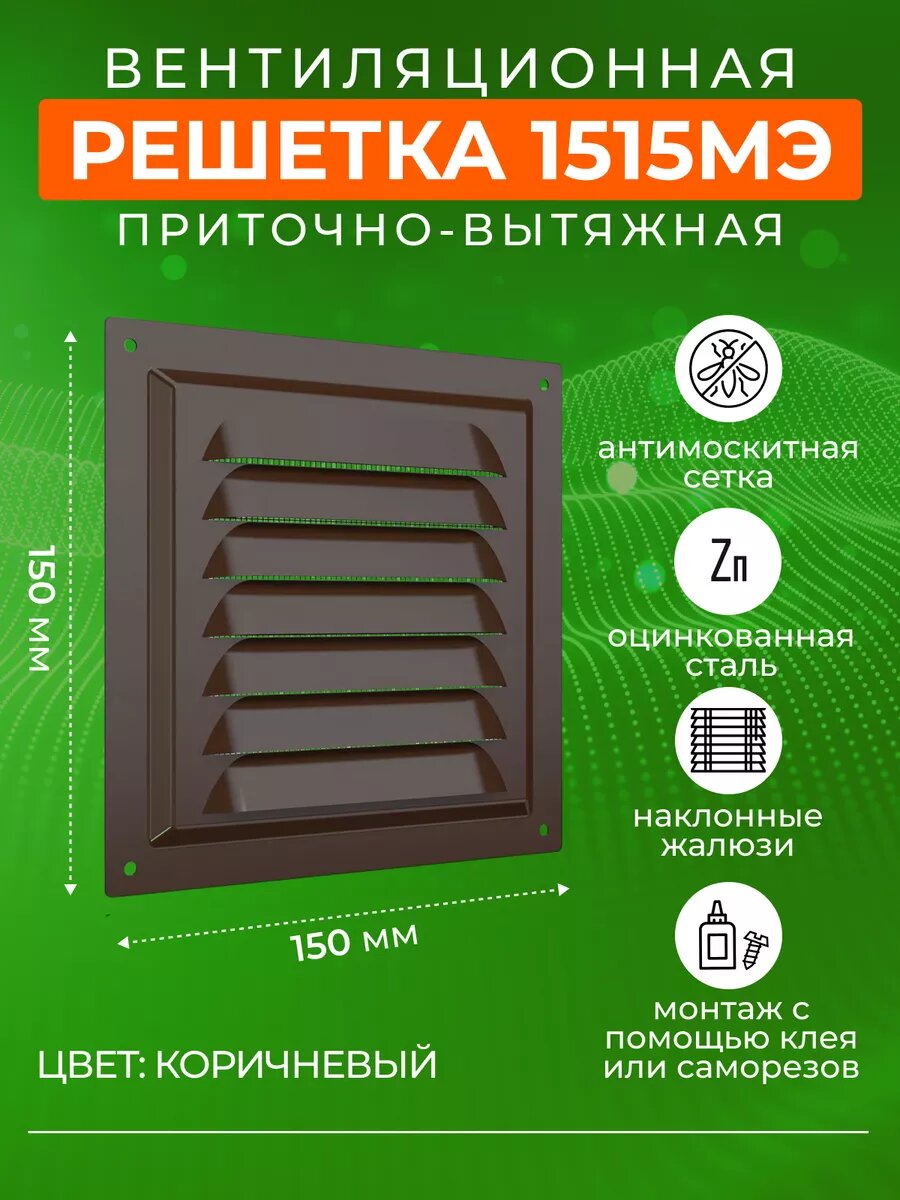 1515МЭ кор, Решетка вентиляционная с покрытием полимерной эмалью, с сеткой 150х150, Сталь,коричневая
