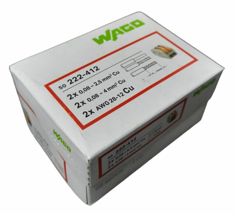 Ниже Вы можете прочитать отзывы на Клемма соединительная зажимная WAGO 222-412 2 отверстия (0.08-2.5) 50шт, ознакомится с подробными характеристиками, посмотреть интересные обзоры и фотографии на Клемма соединительная зажимная WAGO 222-412 2 отверстия (0.08-2.5) 50шт.