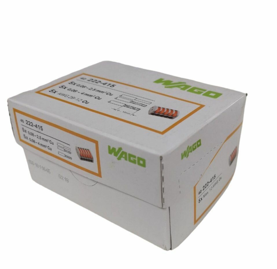 Ниже Вы можете прочитать отзывы на Клемма соединительная зажимная WAGO 222-415 5 отверстия (0.08-2.5) 40шт, ознакомится с подробными характеристиками, посмотреть интересные обзоры и фотографии на Клемма соединительная зажимная WAGO 222-415 5 отверстия (0.08-2.5) 40шт.