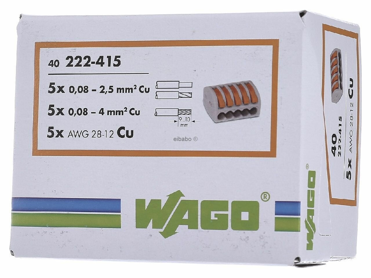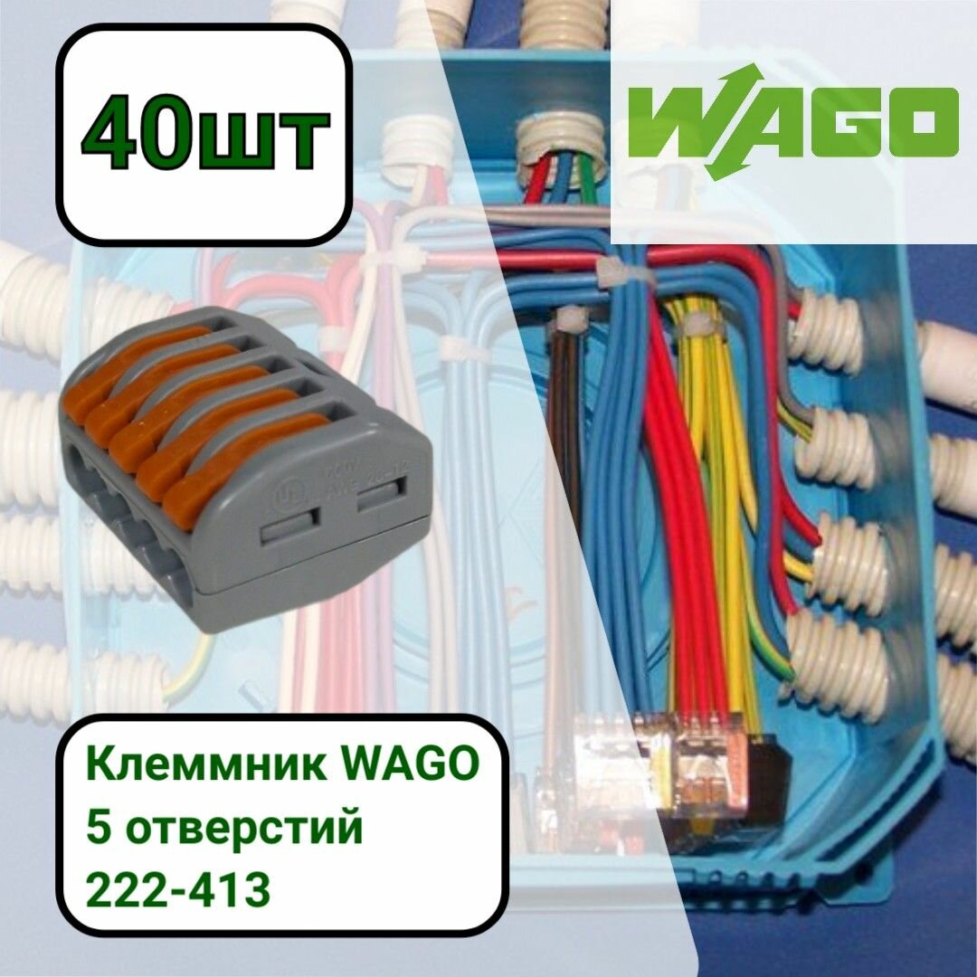 Купить Клемма соединительная зажимная WAGO 222-415 5 отверстия (0.08-2.5) 40шт