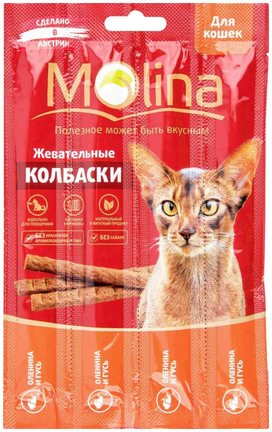 Купить Molina лакомство для кошек, жевательные колбаски, оленина и гусь (4*5гр)