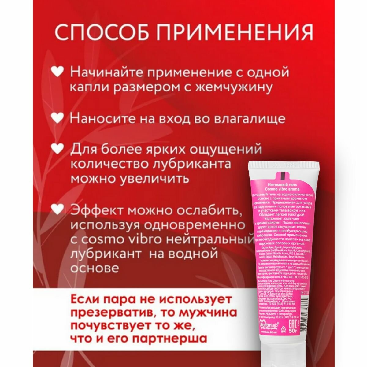 Ниже Вы можете прочитать отзывы на Возбуждающий лубрикант «Cosmo Vibro Aroma» с ароматом земляники, ознакомится с подробными характеристиками, посмотреть интересные обзоры и фотографии на Возбуждающий лубрикант «Cosmo Vibro Aroma» с ароматом земляники.