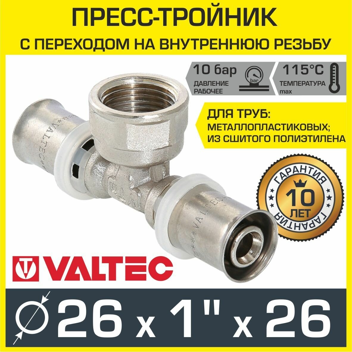 Пресс-фитинг – тройник с переходом на внутреннюю резьбу, Valtec, VTm.232.N.160416