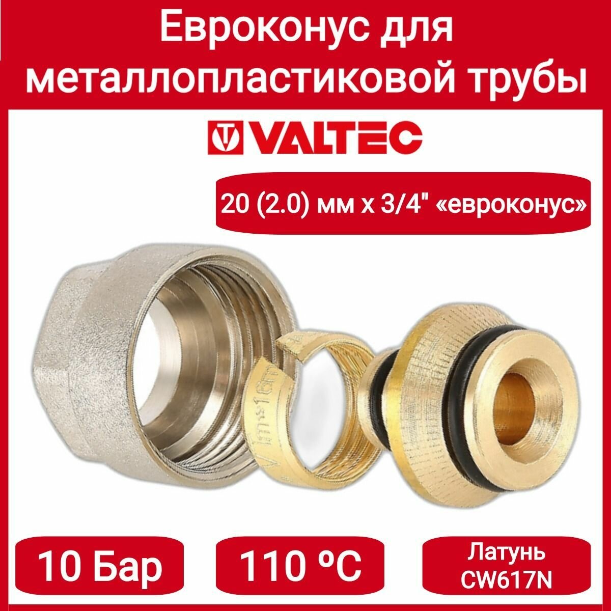 Евроконус 3/4" для металлопластиковых труб 20x2,0 мм (10шт) VALTEC VT.4420.NVE.20