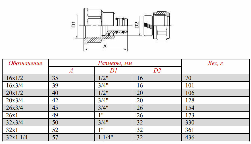 Соединитель обжимной с переходом на вн. р. 32х1 1/4"