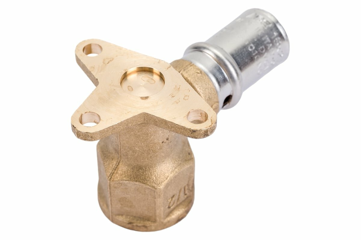 Угольник настенный с креплением короткий 1/2'х16 для металлопластиковых труб прессовой (SFP-0018-001216) RG008S9C4NI3S2 STOUT