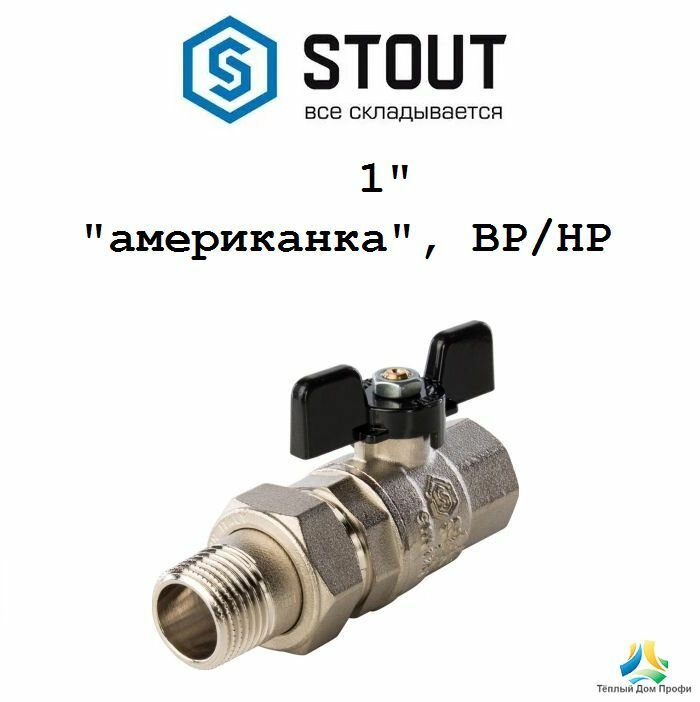 STOUT Кран шаровой полнопроходной с "американкой", ВР/НР, ручка бабочка 1