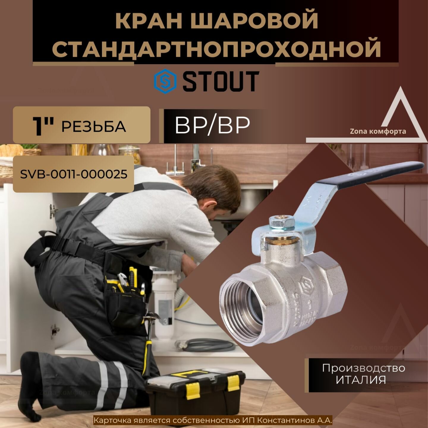 SVB-0011-000025 STOUT Кран шаровой стандартнопроходной, ВР/ВР, ручка рычаг 1"