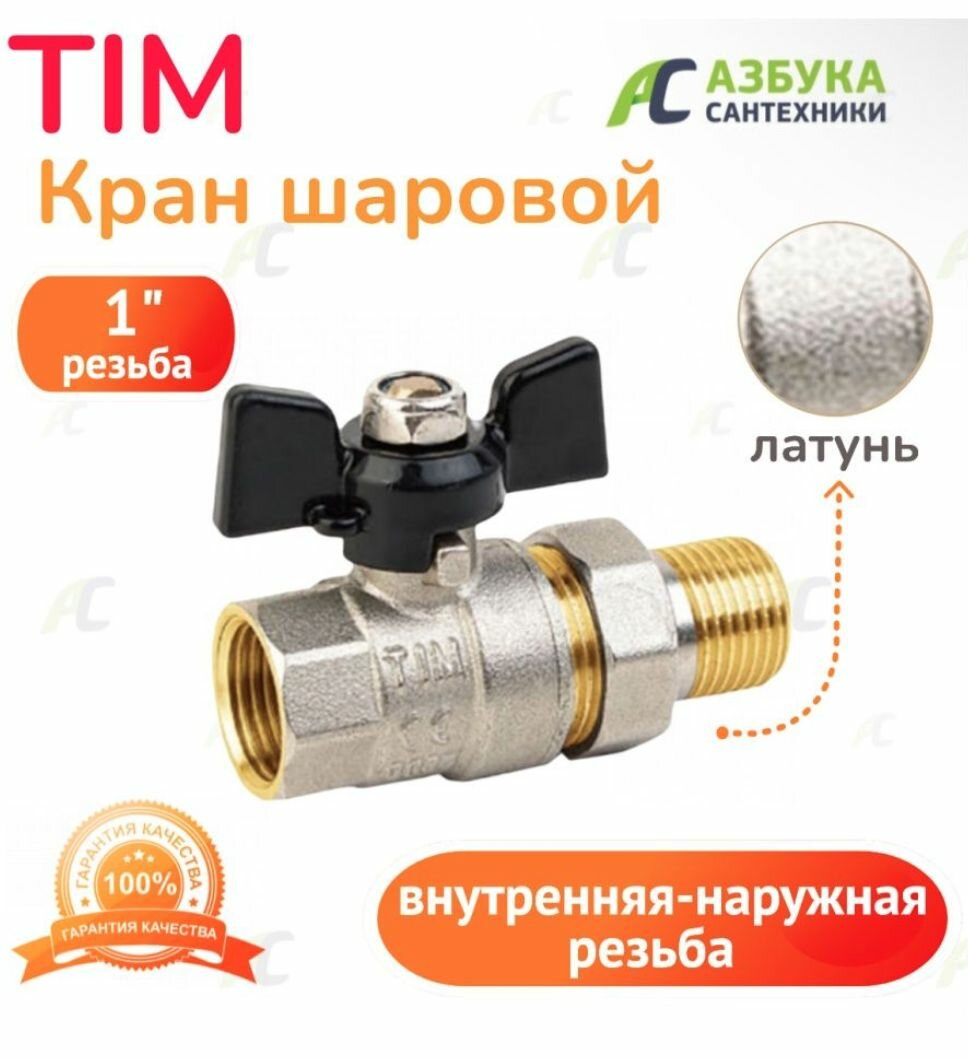 Кран шаровый американка 1" В/Н (ручка-бабочка) TIM