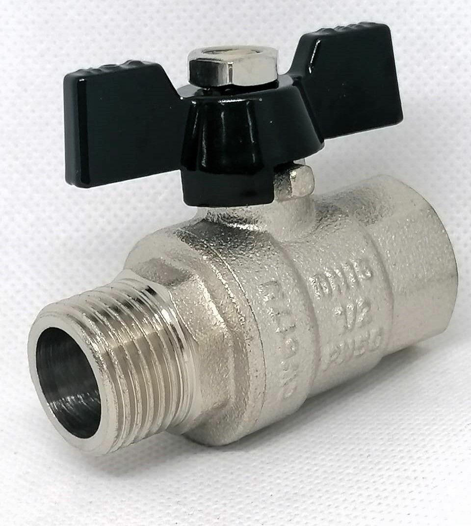 Кран шаровой латунь 1/2" внутренняя-наружная резьба, бабочка DE1215X Tim