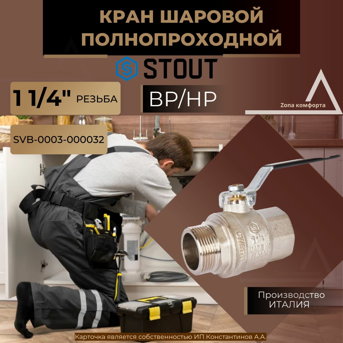 Кран шаровой Stout, полнопроходной, ВР/НР, ручка рычаг, 1 1/4"