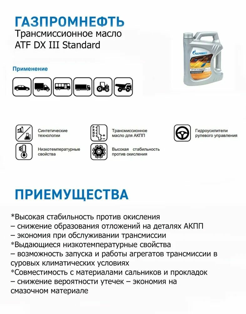 СохранитьМасло для автоматических трансмиссий Gazpromneft ATF DX III Standard, 4л интересное:
