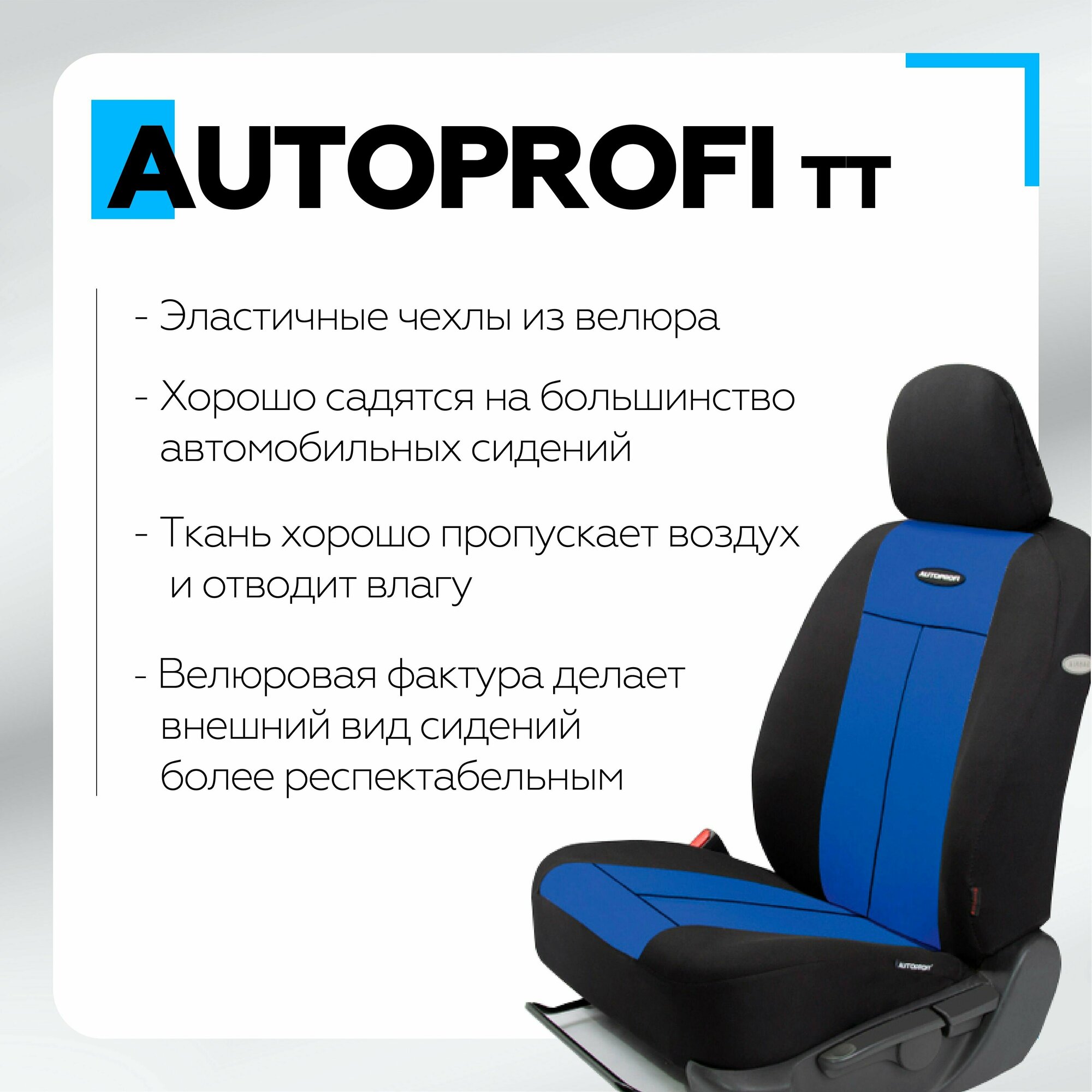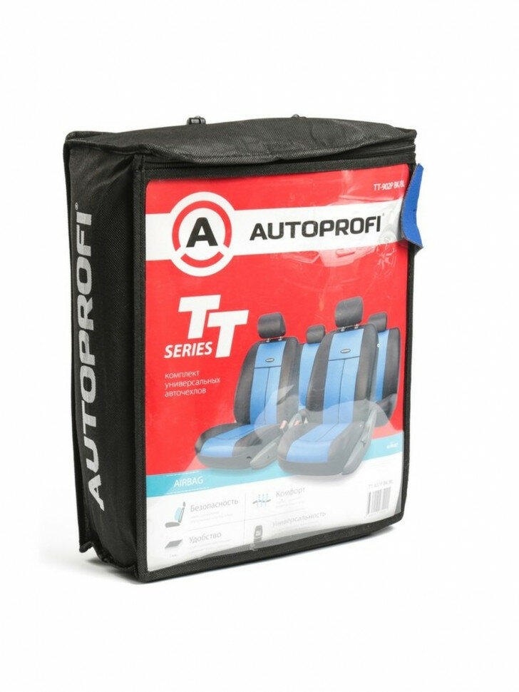 Авточехлы AUTOPROFI TT-902P, универсальные, 9 предметов, AIRBAG, черный/синий