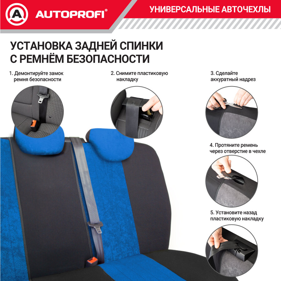 Авточехлы универcальные AUTOPROFI COMFORT, COM-1105 BK/BL (M), велюр, набор из 11 предметов, цвет чёрный/синий