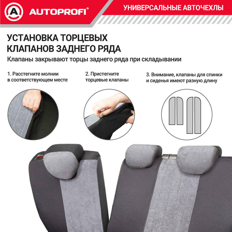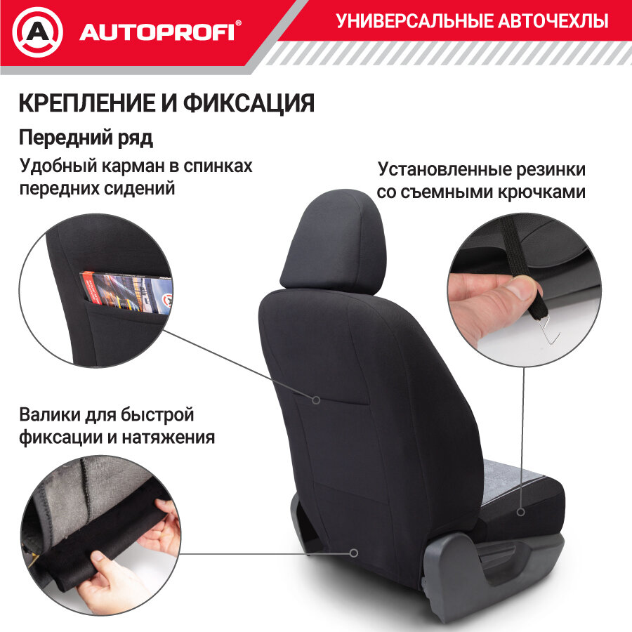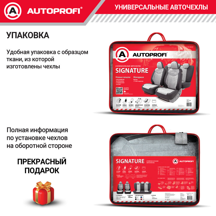 Авточехлы универсальные AUTOPROFI SGN-1505 BK/GY SIGNATURE, велюр, 5 мм поролон, 3D крой, 15 пред., черный/серый