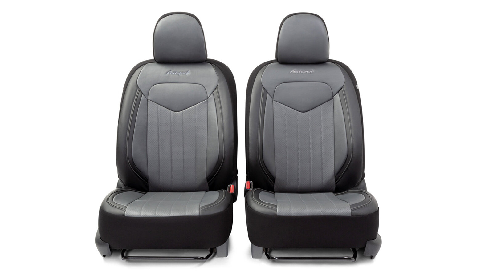 Авточехлы универсальные AUTOPROFI SGN-1505GF BK/GY SIGNATURE, эко-кожа, 5 мм поролон, торцы и спинка 2 мм поролон, 3D крой, 15 пред., чёрный/серый