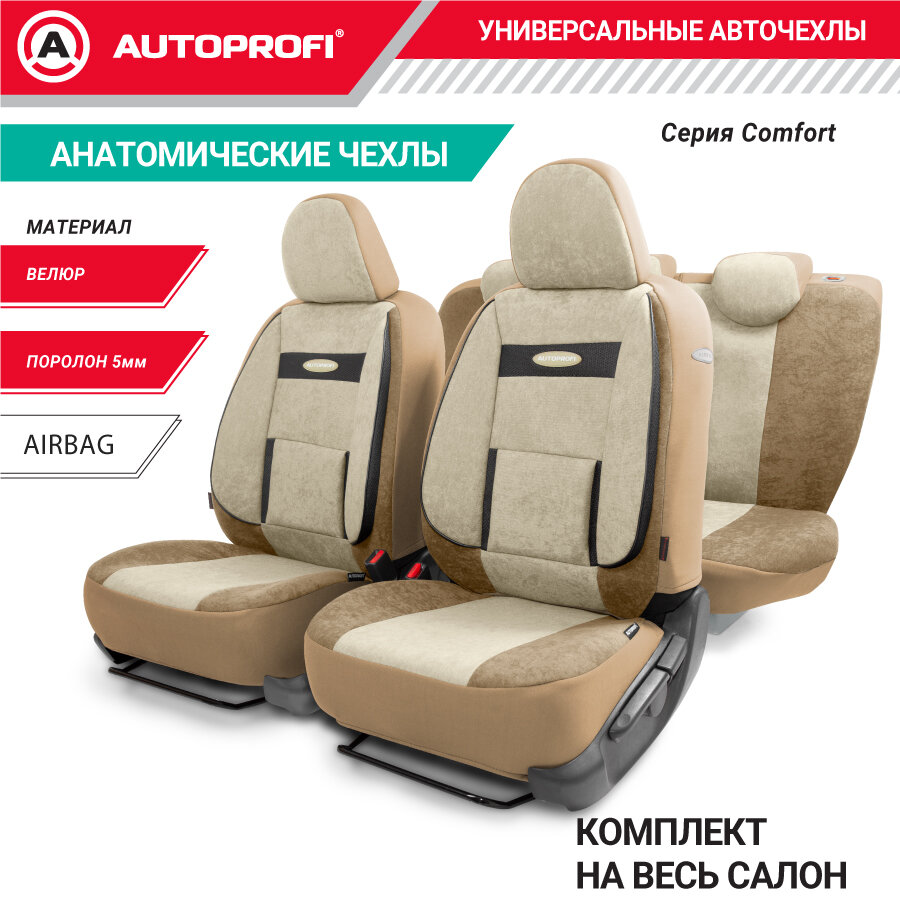 Купить Авточехлы универcальные AUTOPROFI COMFORT, COM-1105 D.BE/L.BE (M), велюр, набор из 11 предметов, цвет тёмно-бежевый/светло-бежевый