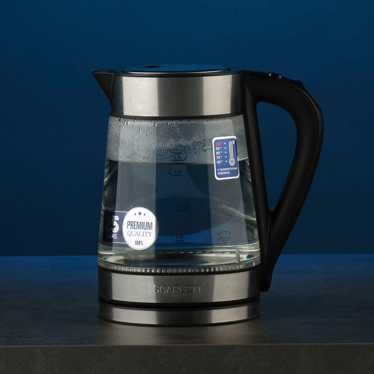 Чайник SCARLETT SC-EK27G55, стекло, 2200Вт, 1.7л, черный