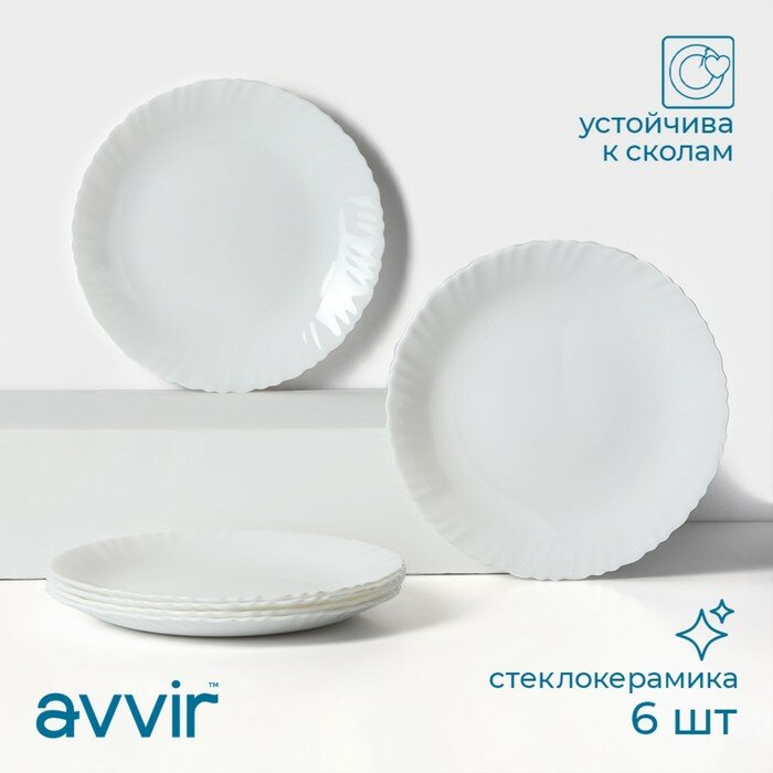 Купить Набор обеденных тарелок Дива, d-23 см, 6 шт, стеклокерамика, цвет белый
