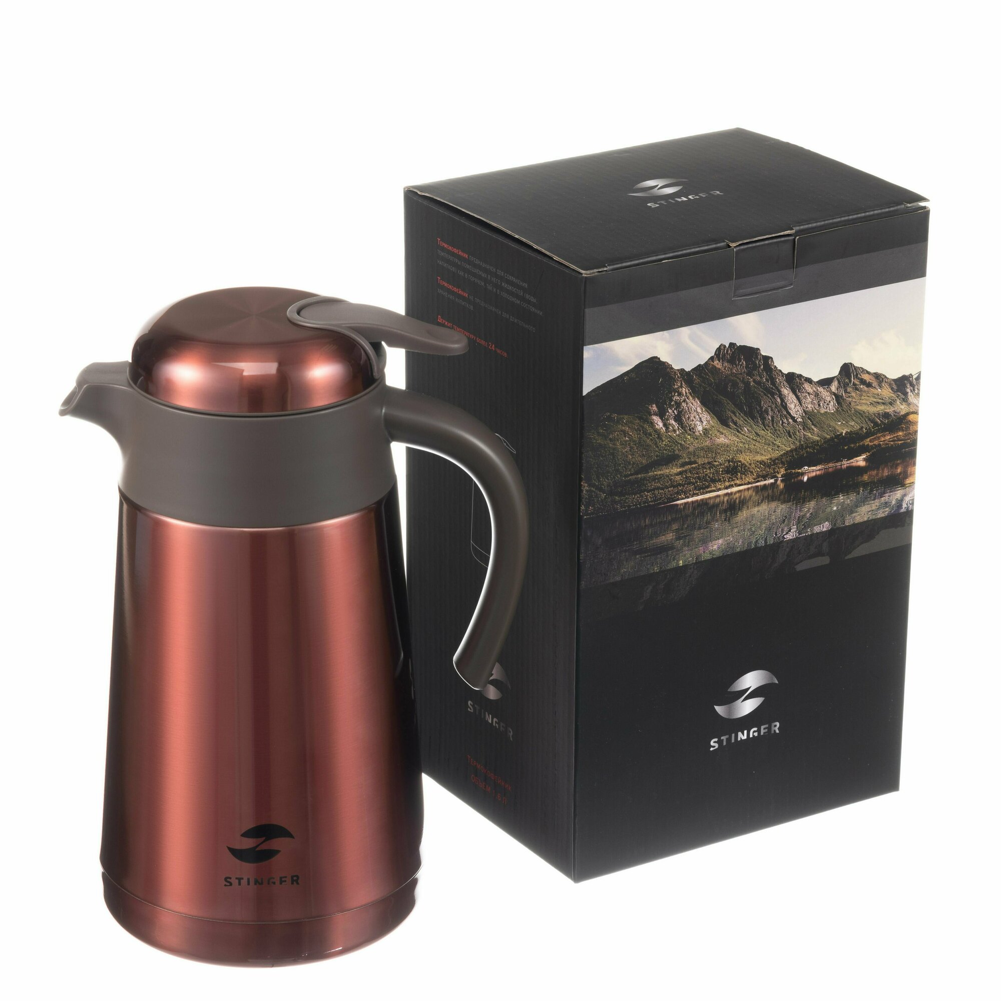 Термокофейник Stinger, 1,6 л, нержавеющая сталь, серебристый, 18 x 13,6 x 25,9 см