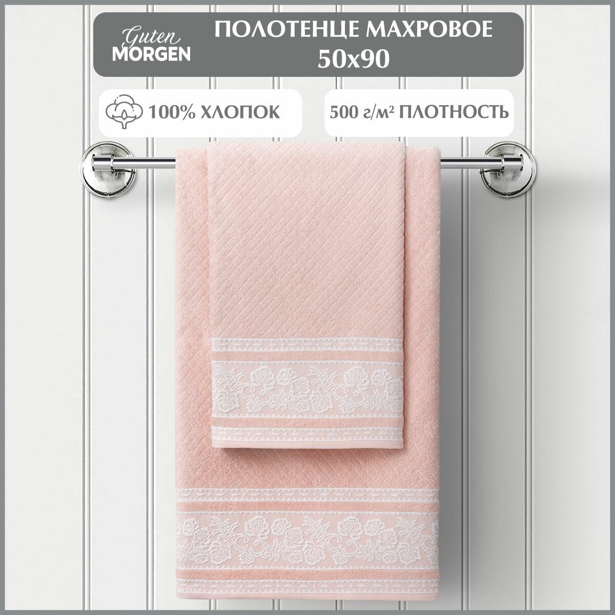 Купить Полотенце махровое, Guten Morgen, 1 шт. 50х90 см, Пастораль Цвет: Розовый, 100% хлопок