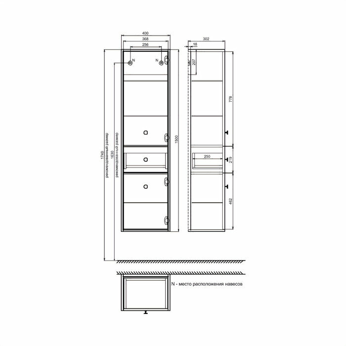 Шкаф-пенал Iddis Cloud 40х150 CLO40W0i97 правый