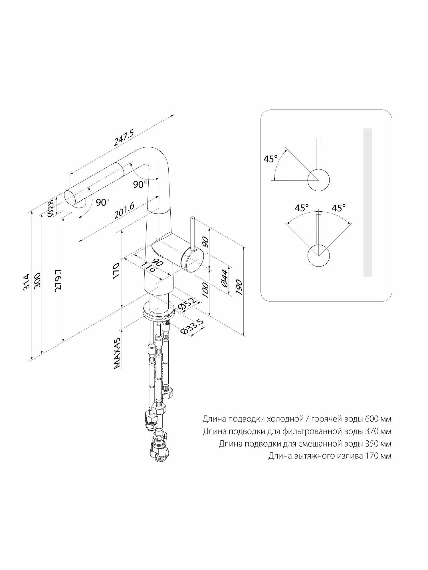 | Длина излива | 189 мм |