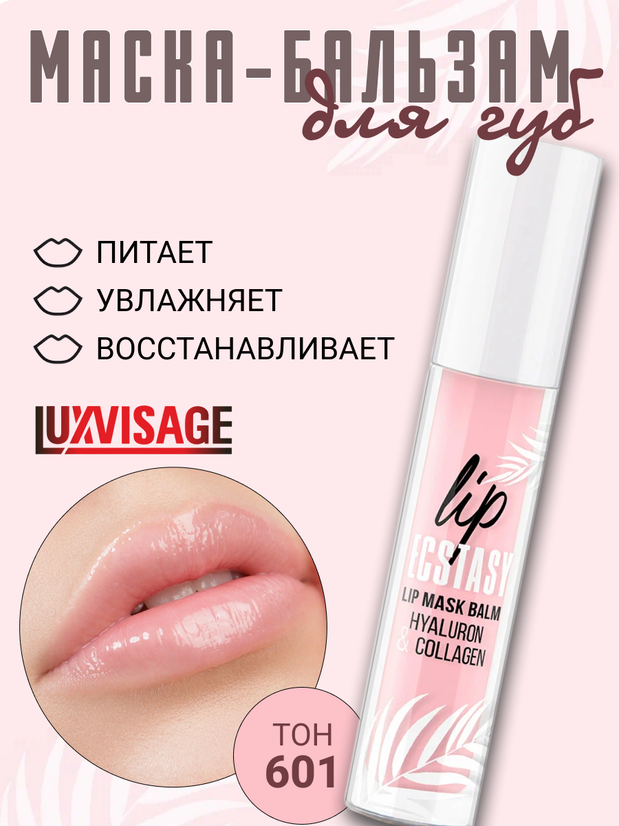 Купить LUXVISAGE Маска-бальзам для губ LIP ECSTASY hyaluron & collagen, тон 601 ROSE