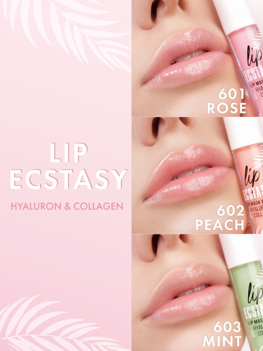 LUXVISAGE Маска-бальзам для губ LIP ECSTASY hyaluron & collagen, тон 601 ROSE