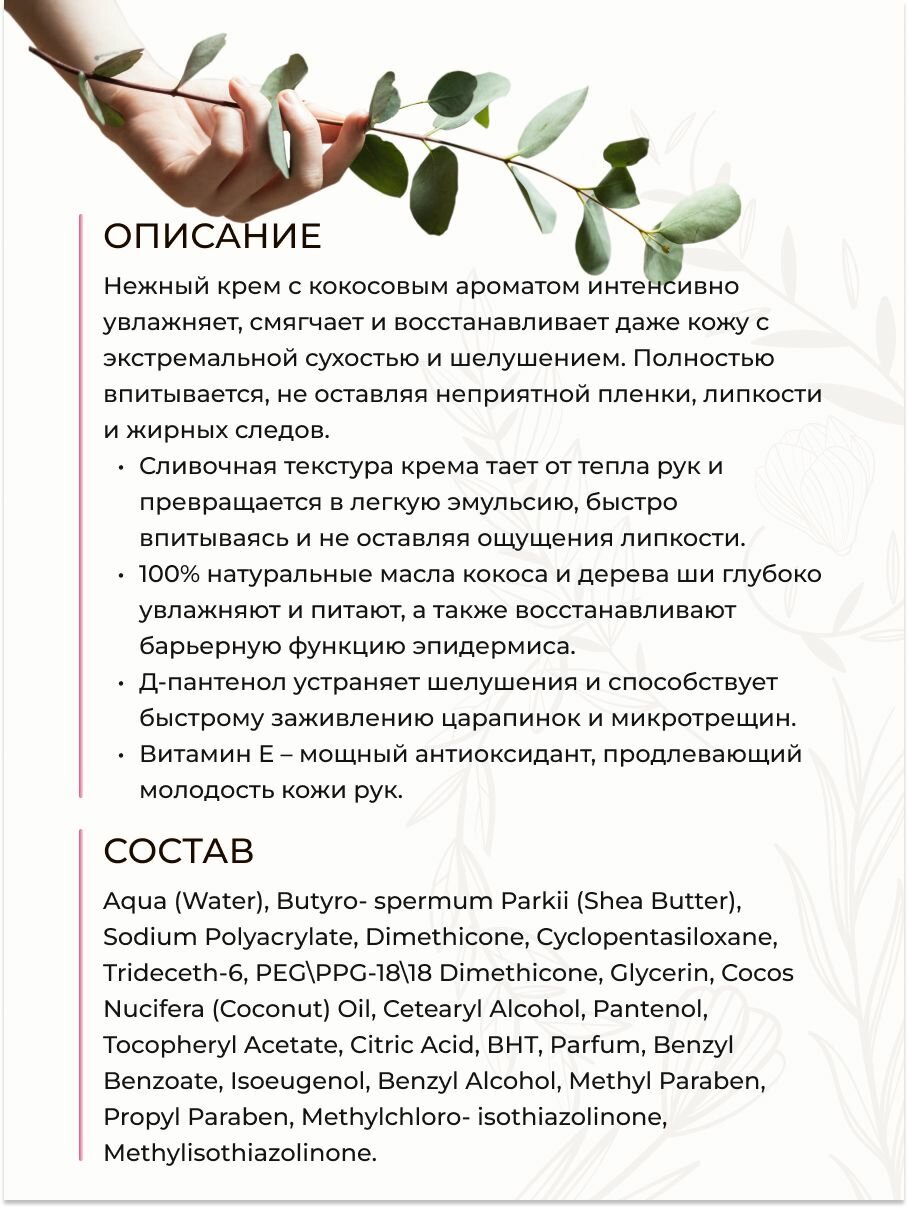 | Плюсы: | Хорошо впитывается и увлажняет кожу, для сухих рук и зимы - самое то! |