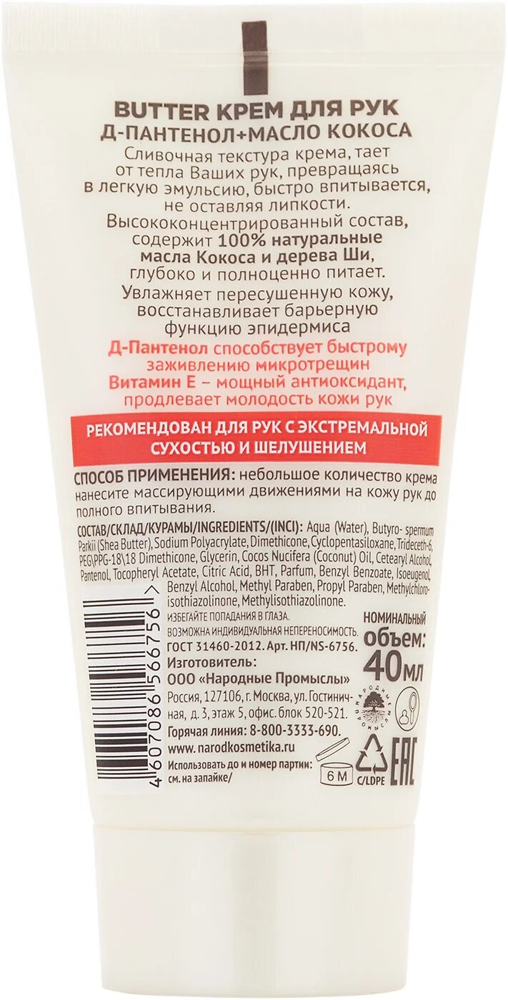 Новосвит BUTTER Крем д/рук Пантенол/Кокос 40мл
