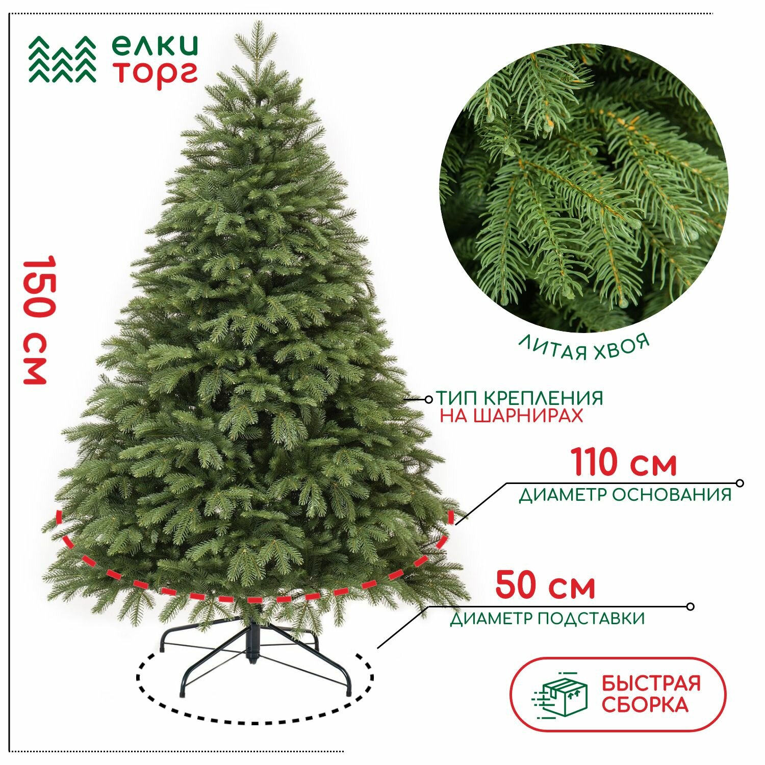 Купить Новогодняя искусственная елка Дворянская 150 см., 100% литая хвоя, ЕлкиТорг (93150)